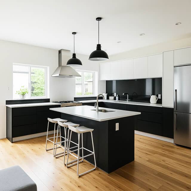 雑誌で見たような、白と黒のモダンなキッチンが我が家の主役です。すっきりとした直線的なデザインと、考え抜かれた収納のおかげで、いつでも美しい空間を保てます。ここで味わう朝食は、慌ただしい日常を忘れさせてくれる優雅なひととき。私たちの「好き」という想いを丁寧に汲み取り、理想以上の空間を提案してくださったことに、心から感謝しています。